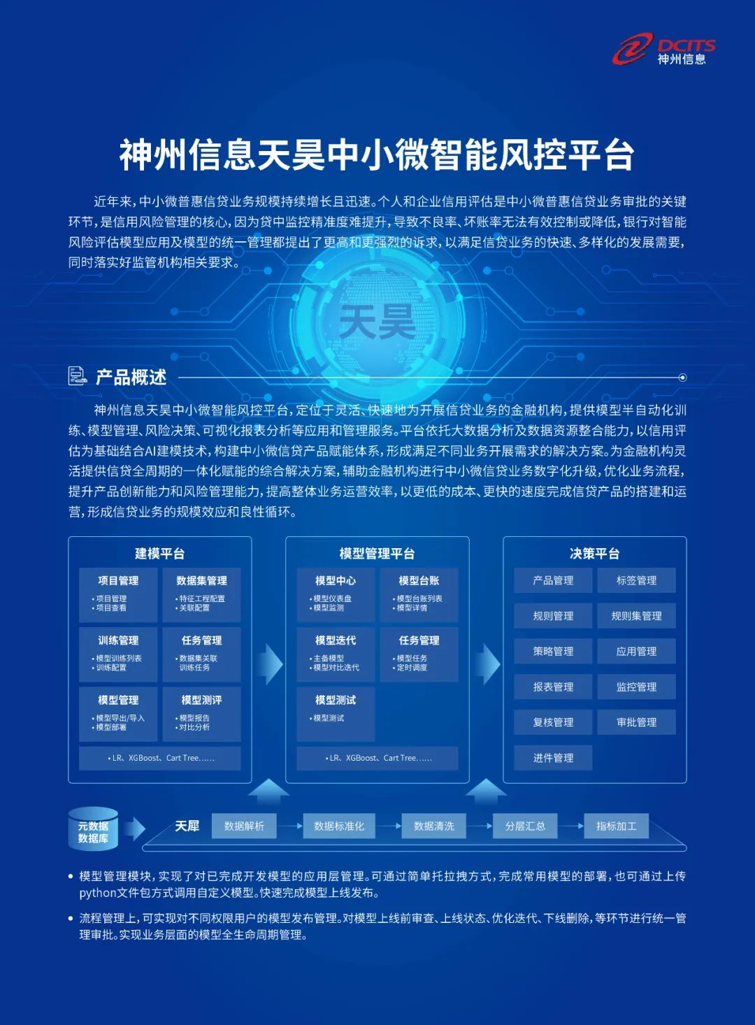 FinTech产品 | 神州信息天昊中小微智能风控平台